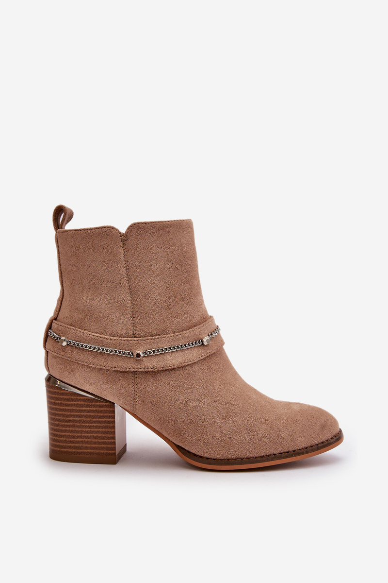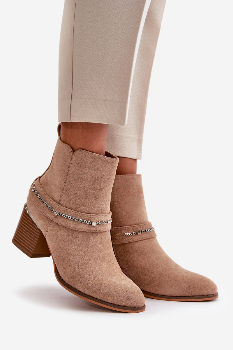 Zateplené dámské boty na podpatku s řetízkem eko semišové béžové Hanalen