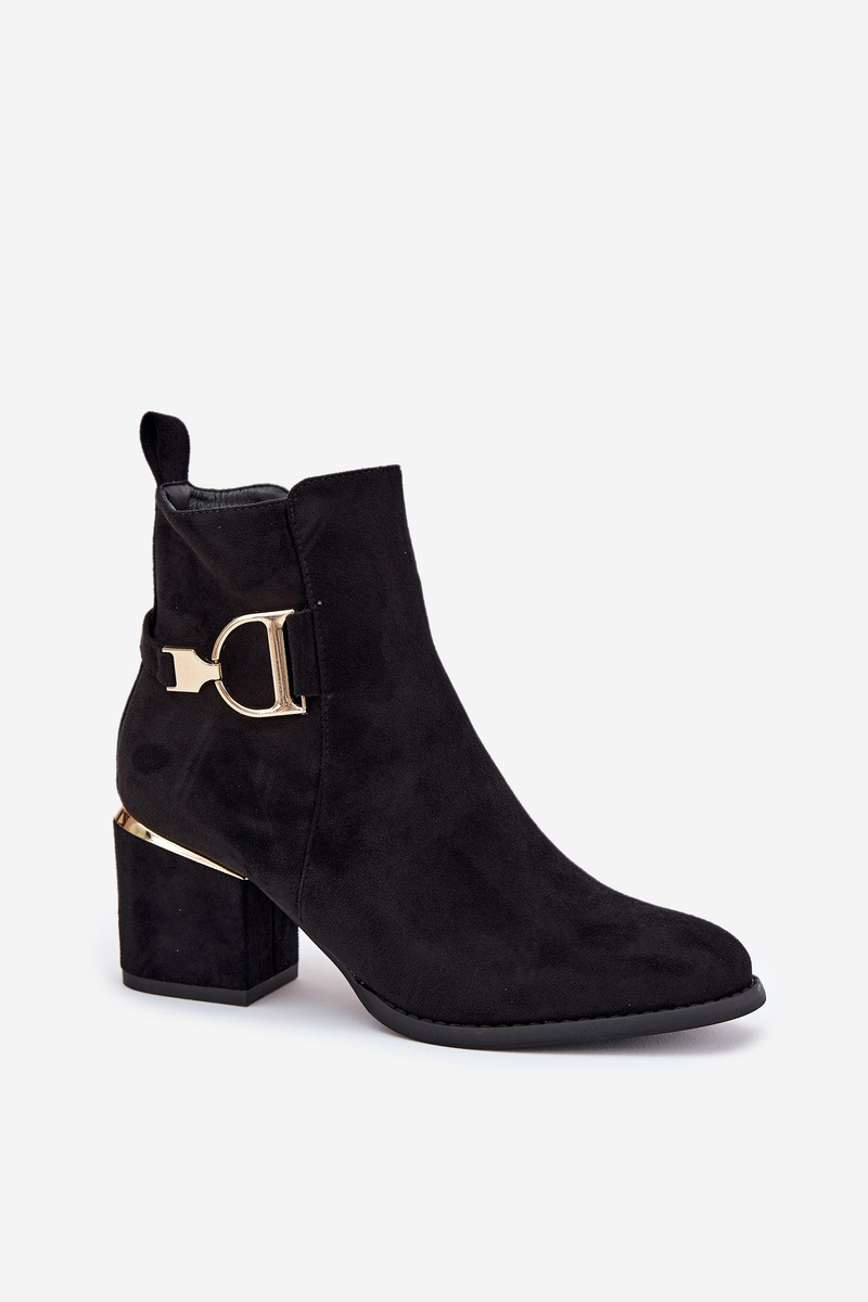 Zateplené dámské boty na podpatku se zlatými prvky černé Ambrine