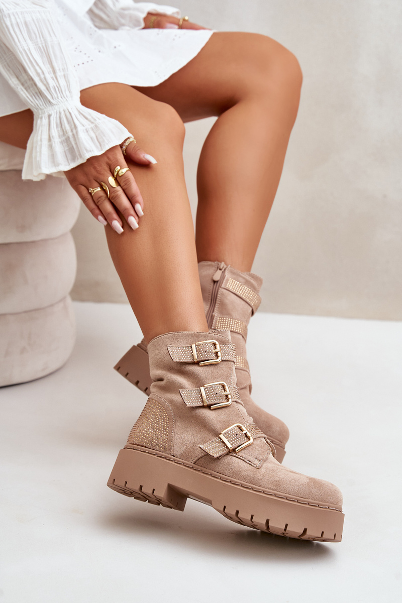 Zateplené dámské boty se sponami béžové Tiaeliana