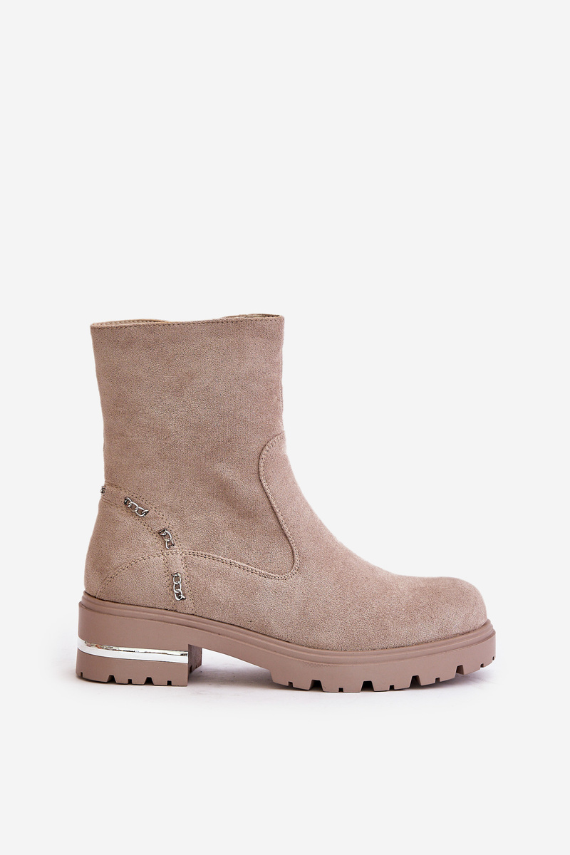 Zateplené dámské boty z eko semiše na zip béžové Narilie