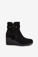 Zateplené dámské kotníkové boty na klínu s třásněmi Černé Olivarae