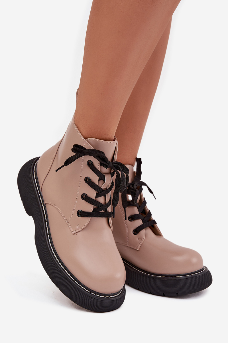 Zateplené dámské kotníkové boty na platformě s šněrováním tmavě béžové Harmine