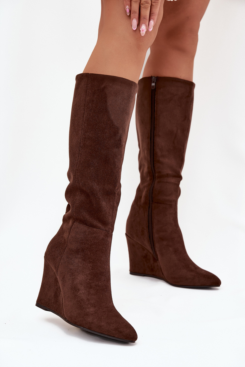 Zateplené dámské kozačky na klínu čokoládové Rosina