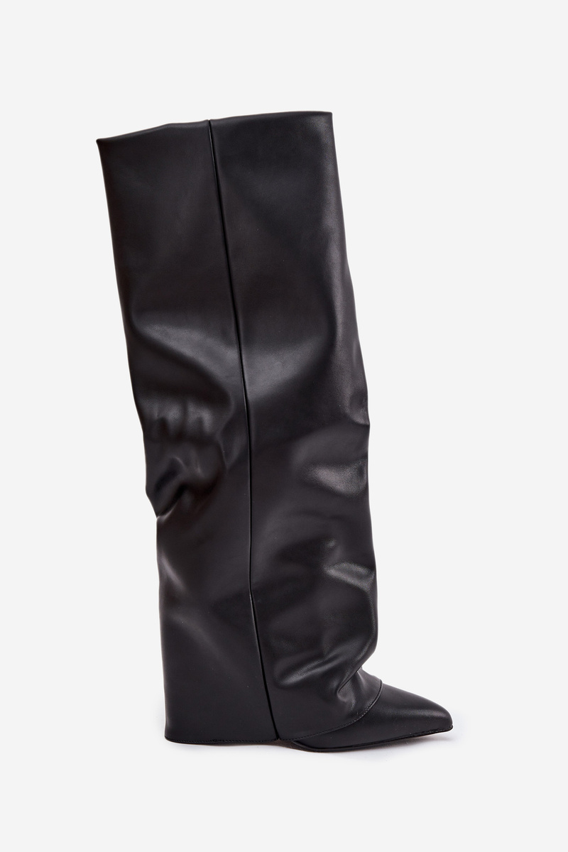 Zateplené dámské kozačky s otočeným horním lemem na podpatku Černé Elivira