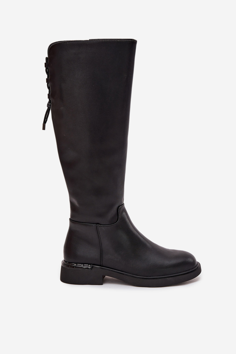 Zateplené dámské kozačky z pravé kůže na nízkém podpatku Vinceza 66822 Černé