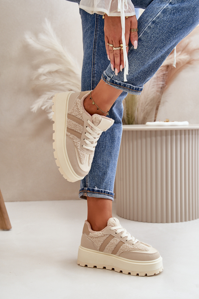 Zateplené dámské tenisky na platformě s kožíškem béžové Daivlene