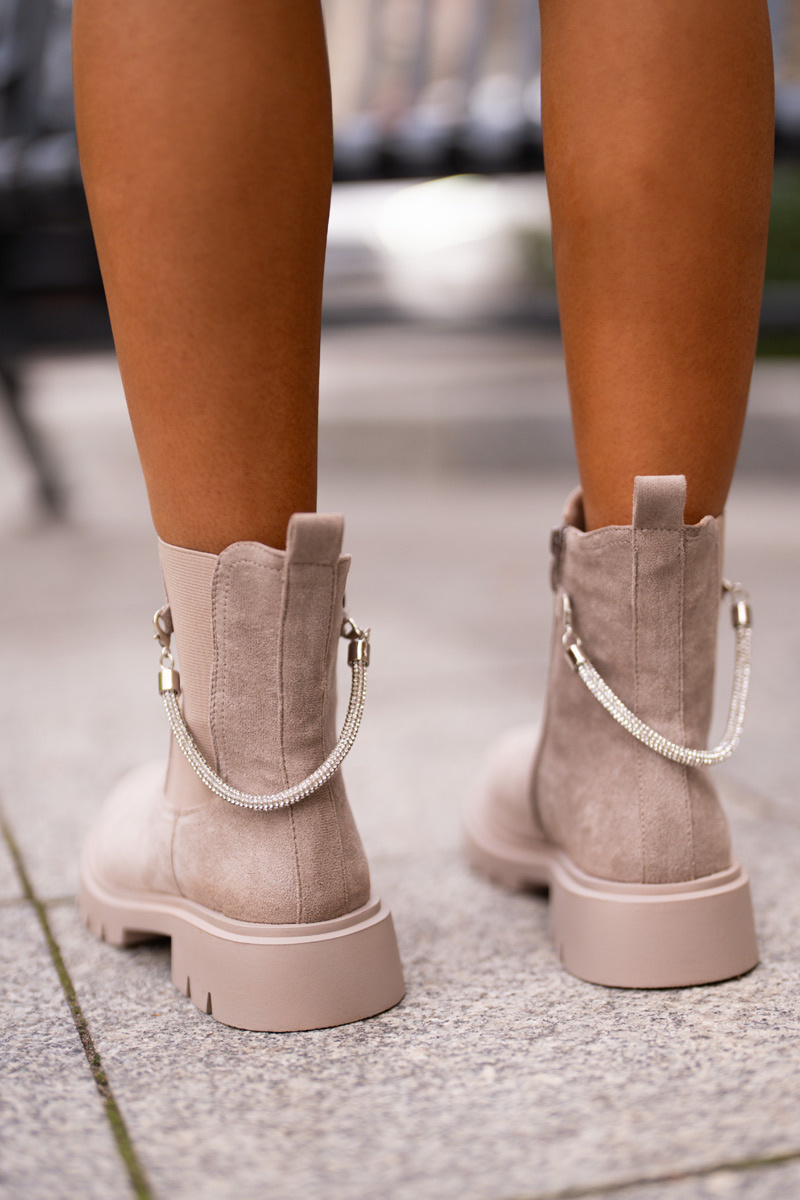 Zateplené kotníkové boty na zip s ozdobným pásem béžové Labenne