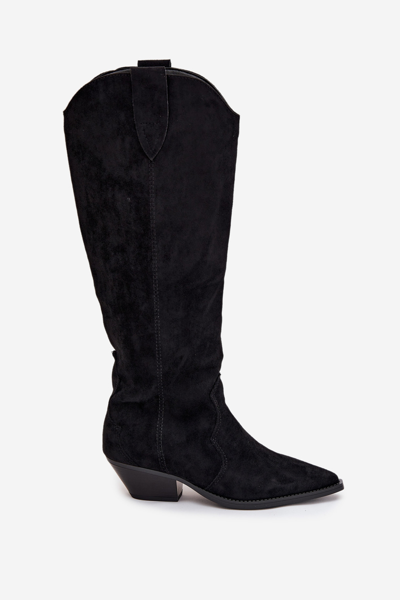 Zateplené Kůže Bota Kovbojky Na Podpatku Z Eko Semiš Černé Jovianne