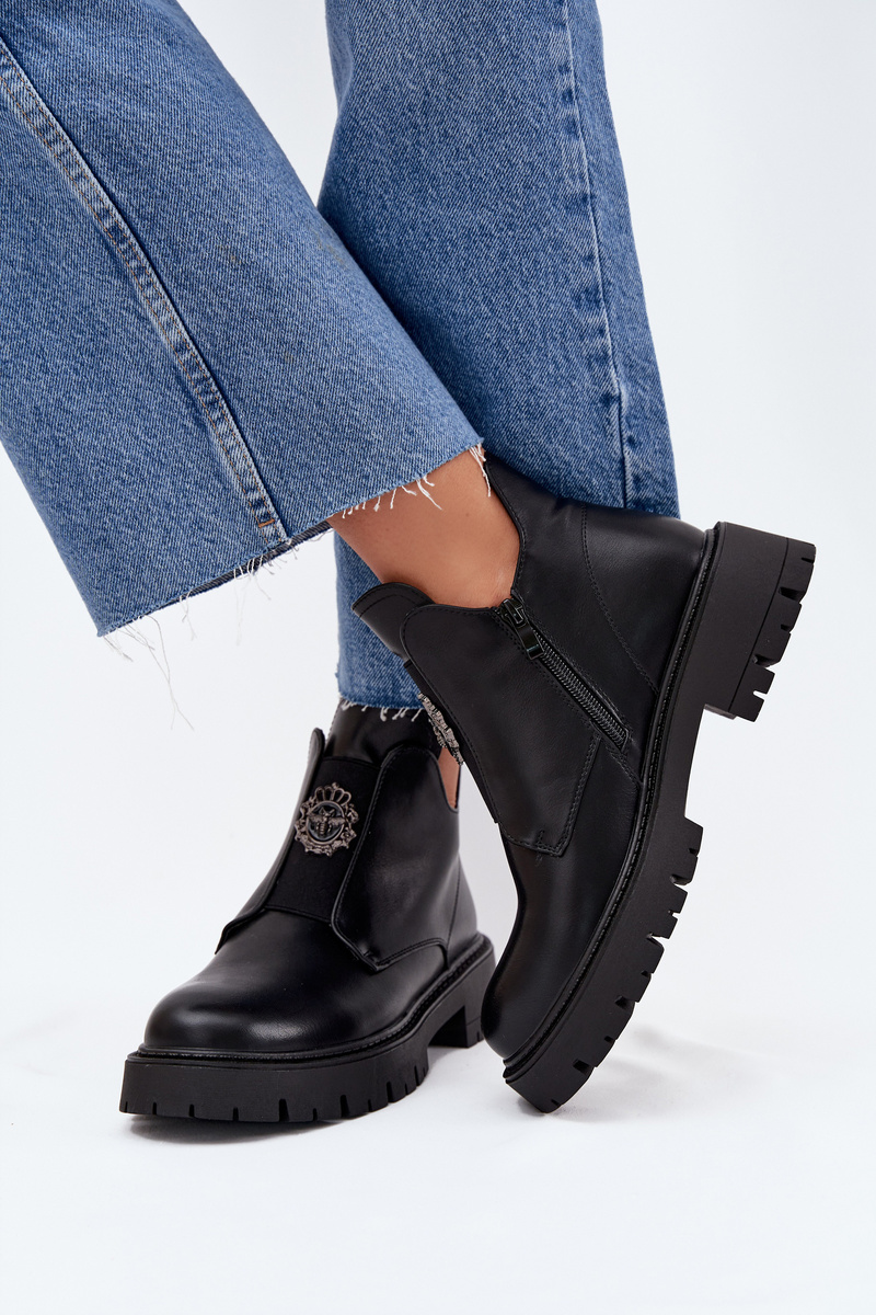 Zateplené Nízké Dámské Boty S Ozdobou Na Zip Černé Lavira