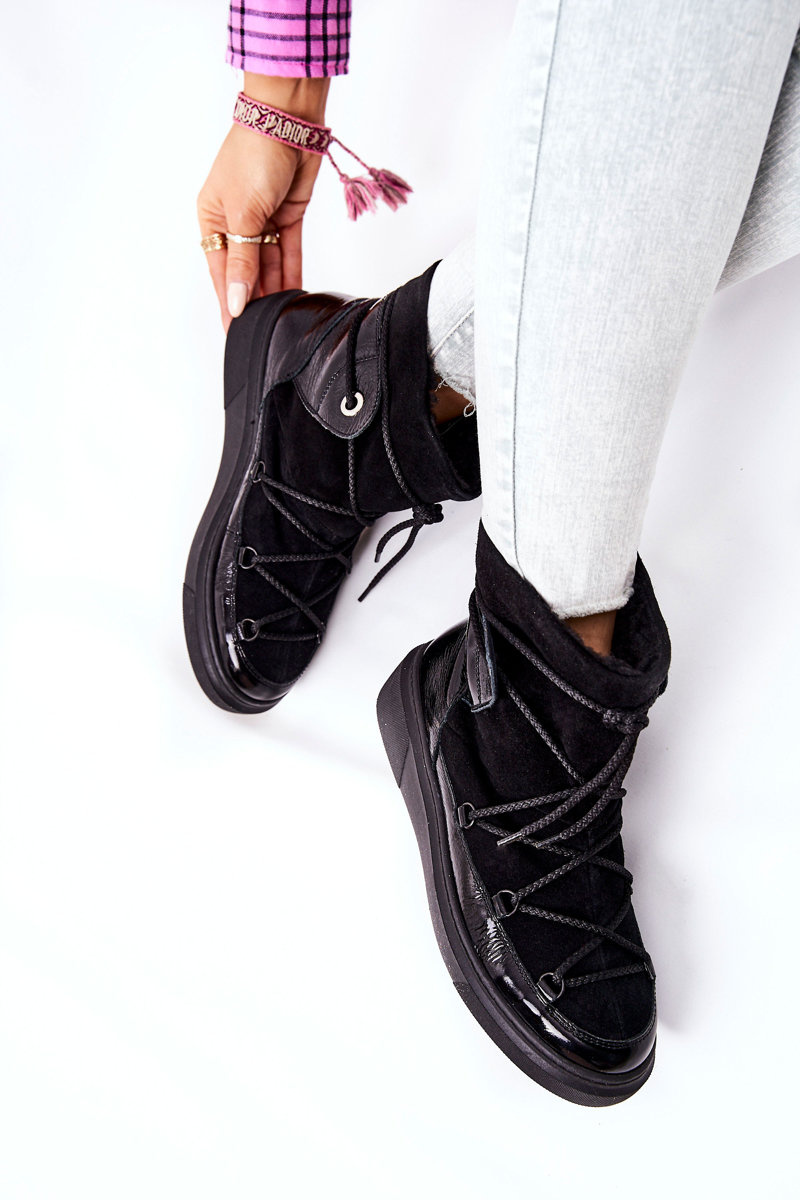 Sněžnice byly vyrobeny z vysoce kvalitní přírodní kůže. Mají silnou podrážku ve tvaru platformy. Vázání zajistí správné přizpůsobení velikosti nohy. Uvnitř jsou boty zateplené v podobě deky na boty. Podívejte se na naši další nabídku bot a sněhulí! Nečekejte, kupte si ještě dnes! Při výběru velikosti se řiďte tabulkou velikostí.