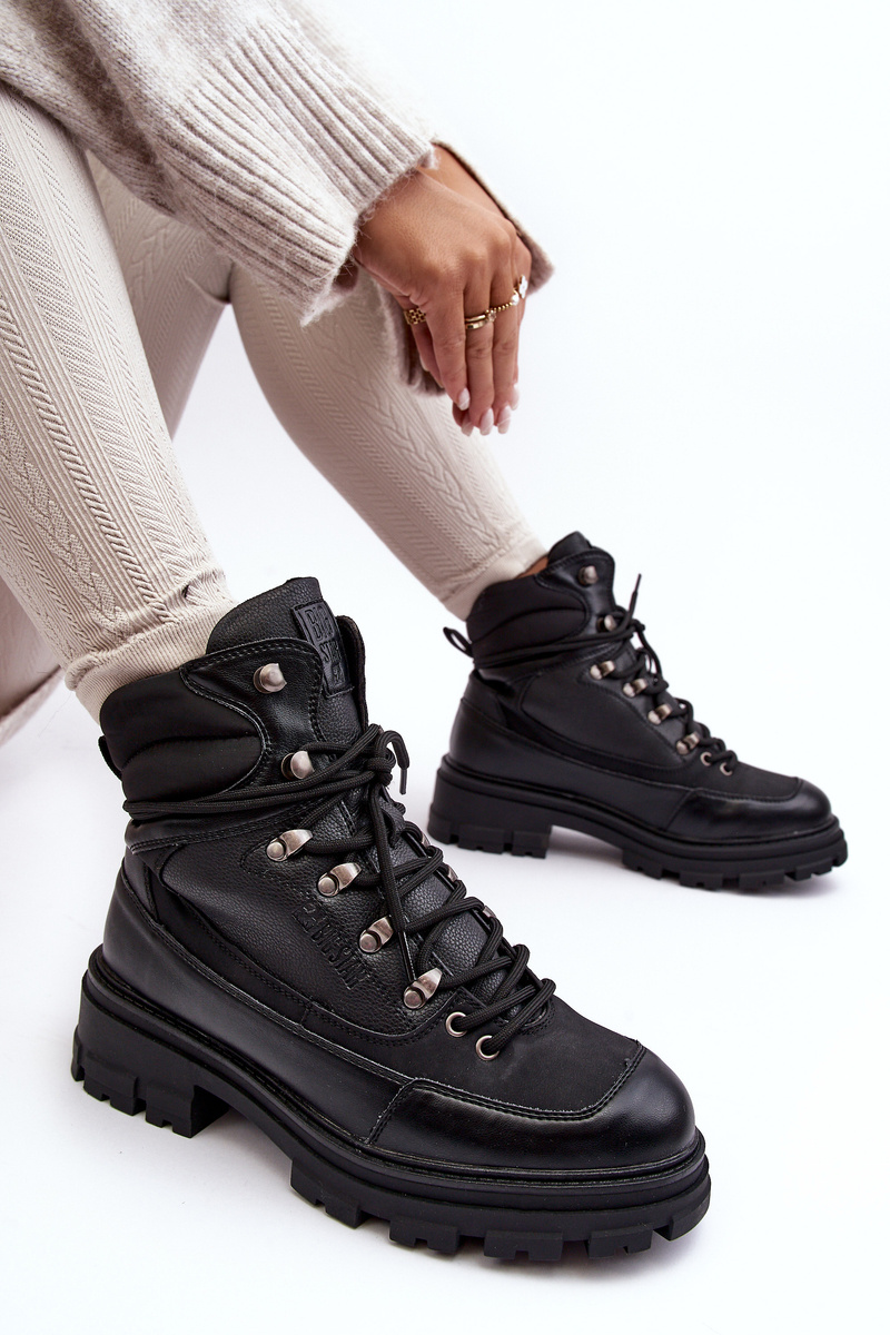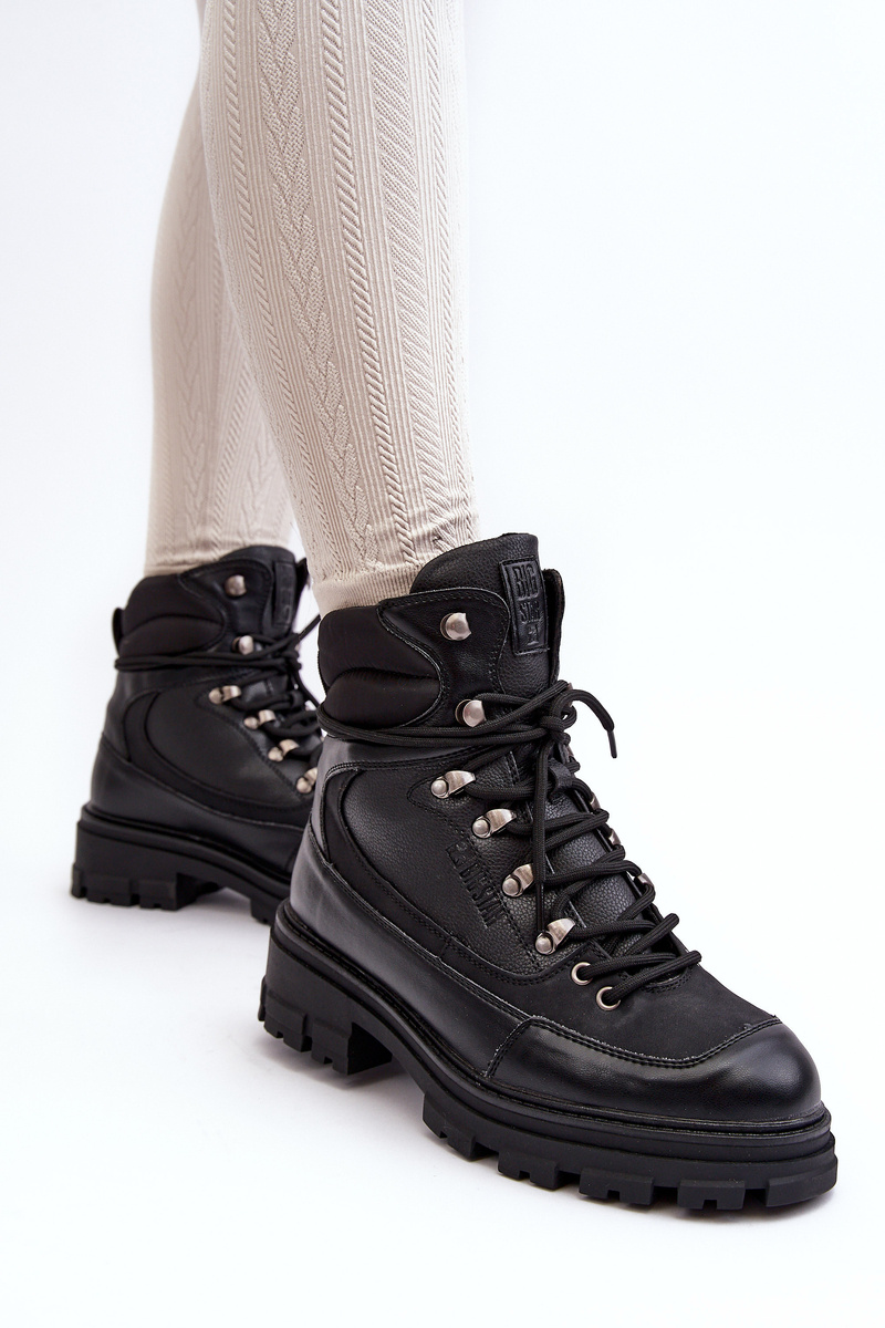 Zateplené Traperové Boty Šněrovací Dámské Černé Big Star MM274663