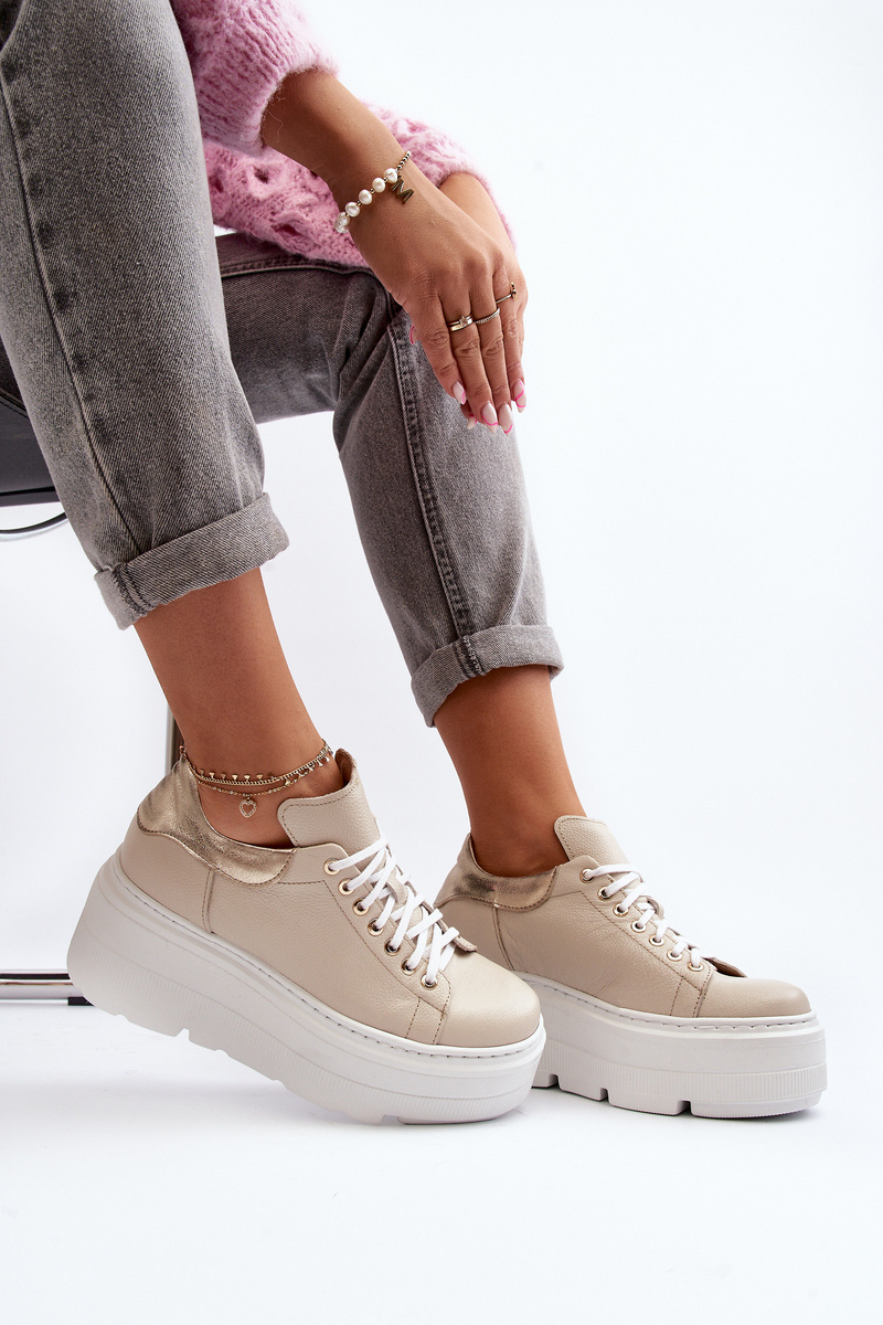 Dámské sportovní boty vyrobené z přírodní kůže. Masivní platforma je činí neuvěřitelně stylovými. Kožená stélka zajistí pohodlí během užívání. Zakulacené špičky. Skvěle se hodí do každodenních stylizací! Při výběru velikosti se řiďte tabulkou velikostí.