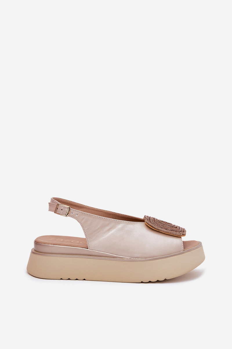 Zazoo 1786 Kožené Sandály Dámské Na Platformě S Dekorací Perlově Béžové