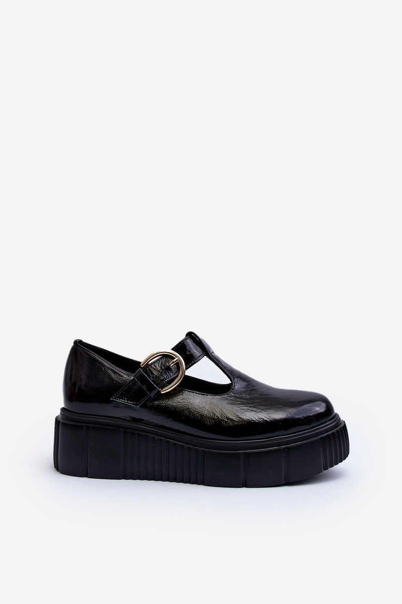 Zazoo 20102 Moderní Lakové Polobotky na Masivní Platformě Černé