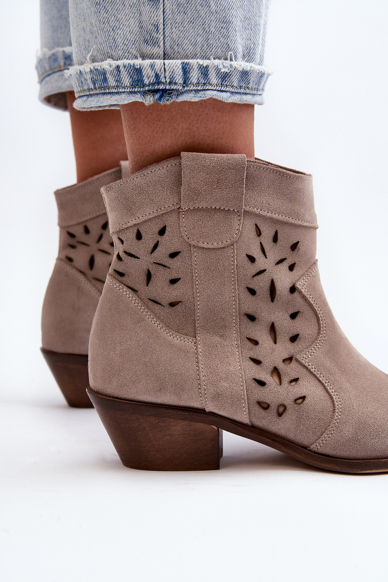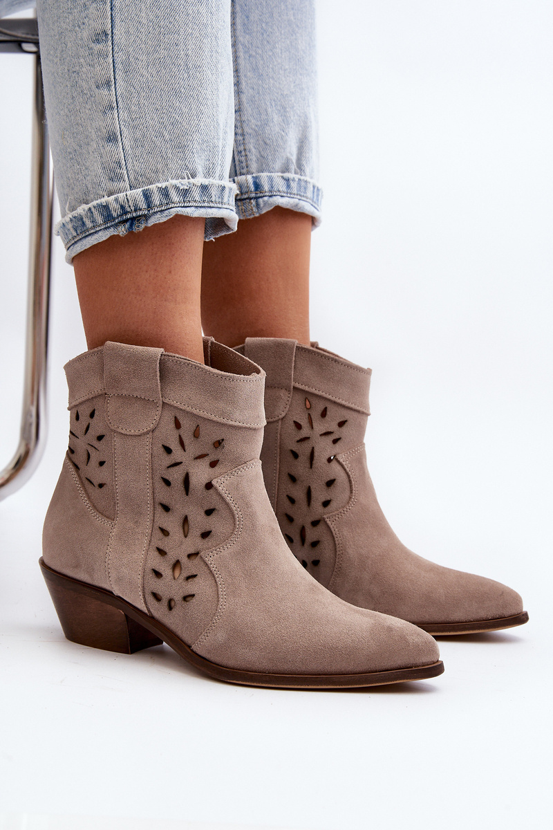 Zazoo 2870 Zamszové Botky Na Nízkém Podpatku Ažurové Bežové