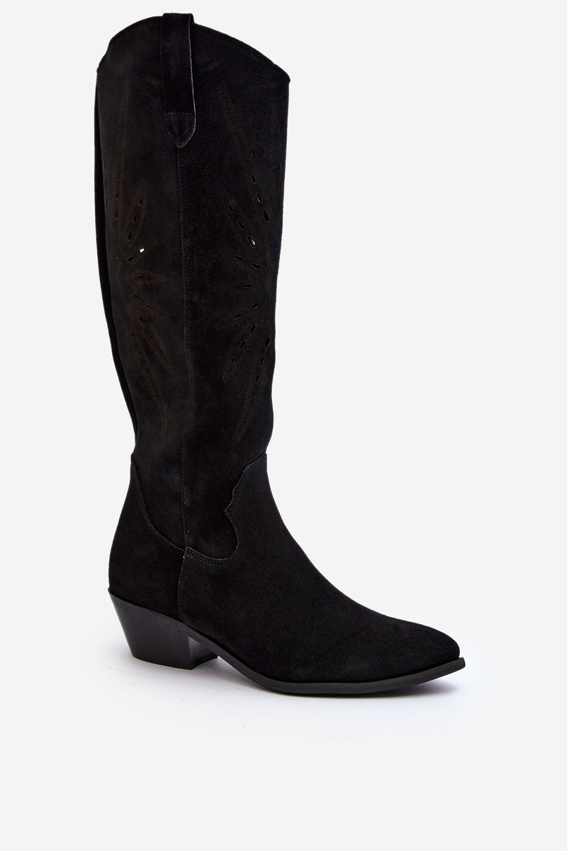 Zazoo 2909 Semišové Boty s Výřezy na Nízkém Podpatku Černé
