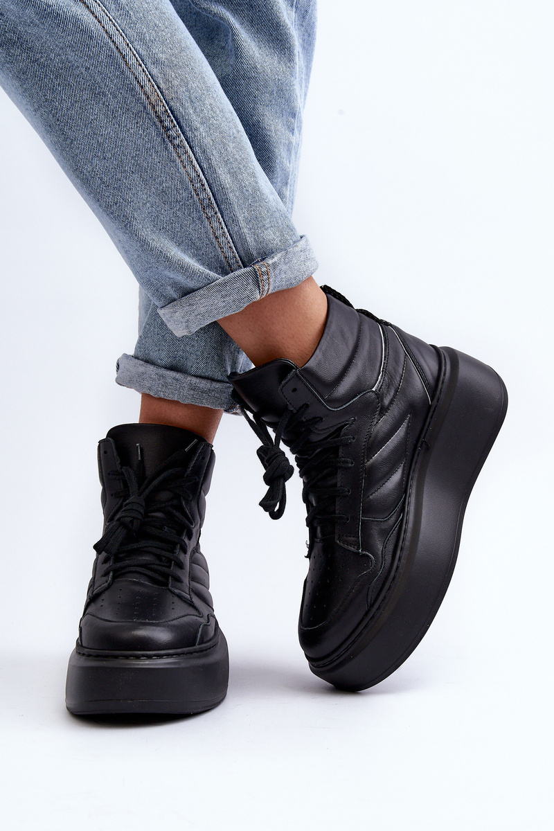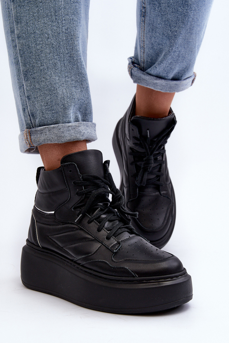 Zazoo 3392/X Dámské Kožené Sportovní Boty na Platformě Černé