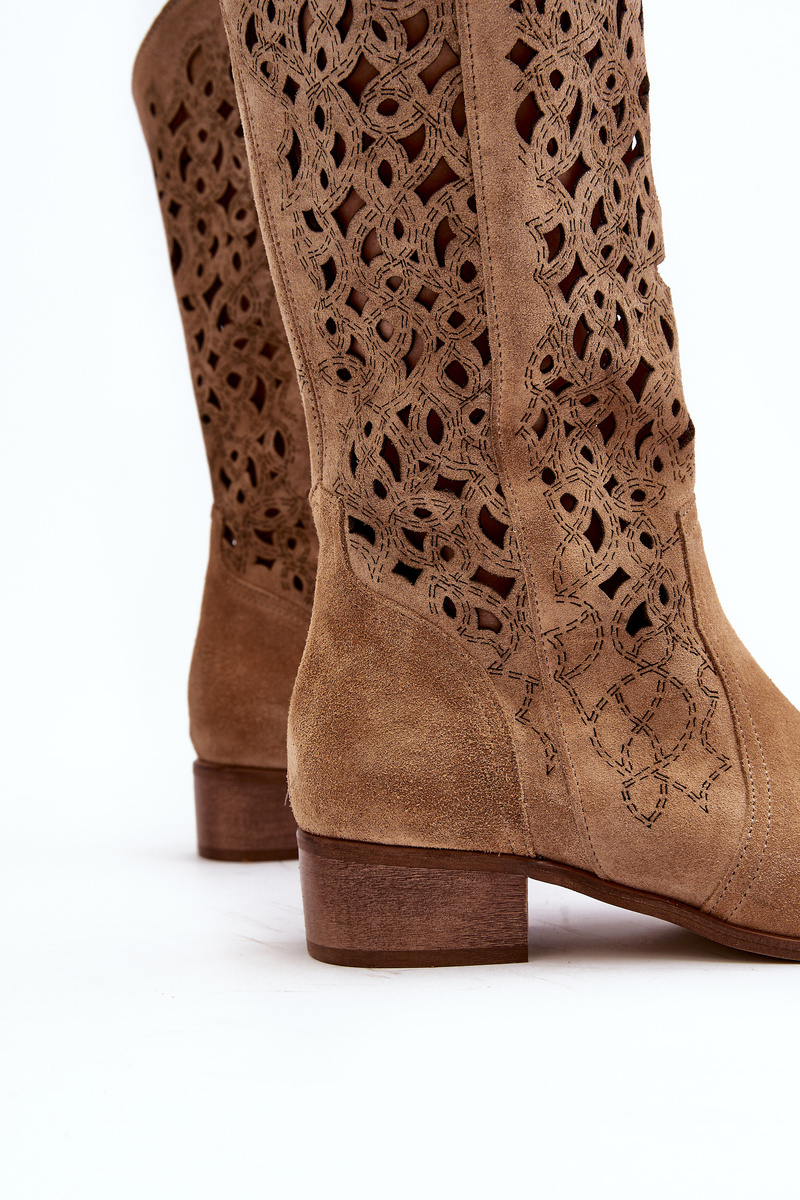 Zazoo 3403 Prosvětlené Dámské Kozačky Na Nízkém Podpatku Béžové