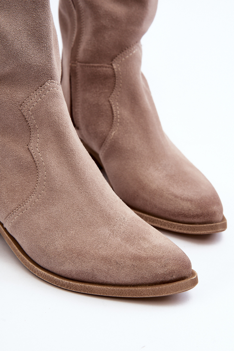 Zazoo 3427 Dámské Semišové Kozaky Kowbojky Cappuccino