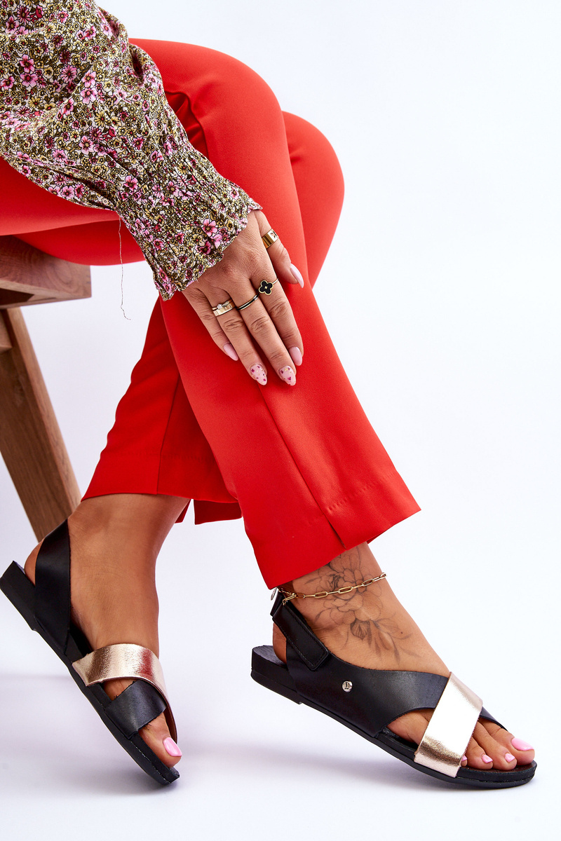 Zazoo 40141 Kožené sandály na suchý zip Černo-zlaté