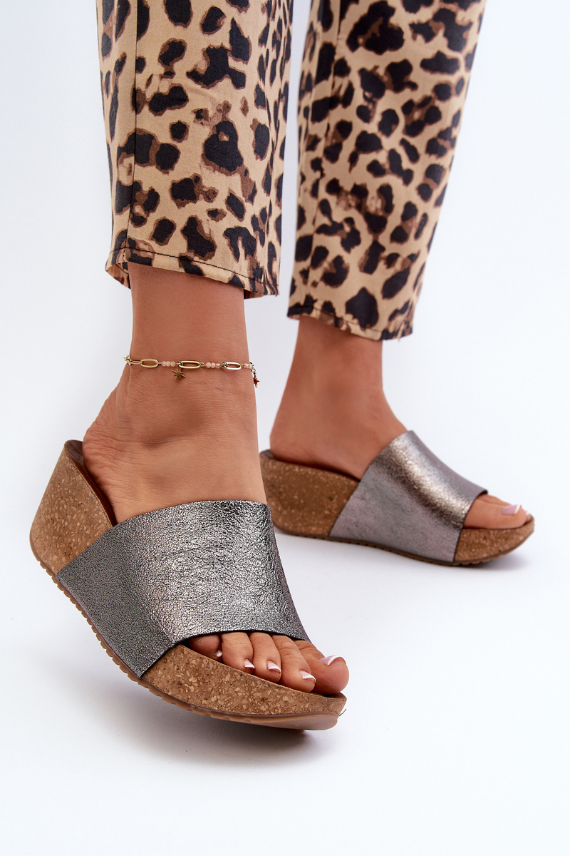 Zazoo 40291 Kožené Dámské Žabky na Korkové Platformě Grafitové
