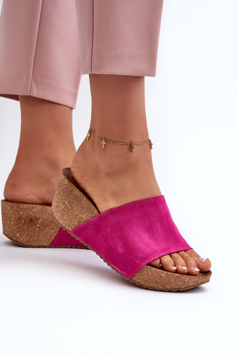 Zazoo 40311 Sametové Dámské Sandály Na Korkové Platformě Fuksie