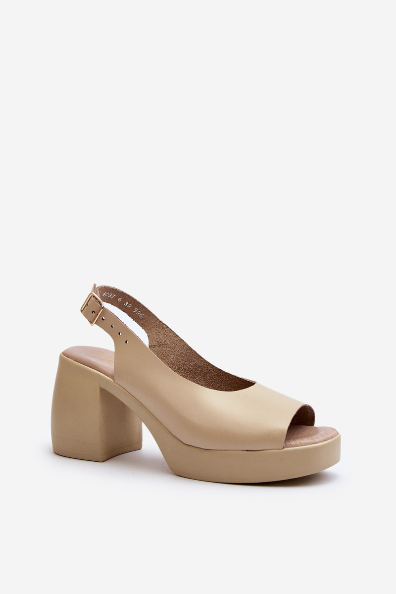 Zazoo 40376 Kožené Sandály Na Masivní Podpatku Bežové