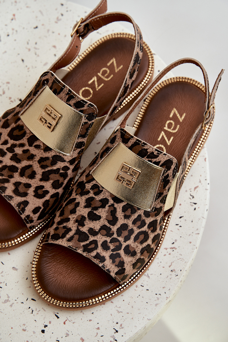 Zazoo 40385 Dámské Kožené Sandály S Leopardím Vzorem Hnědé