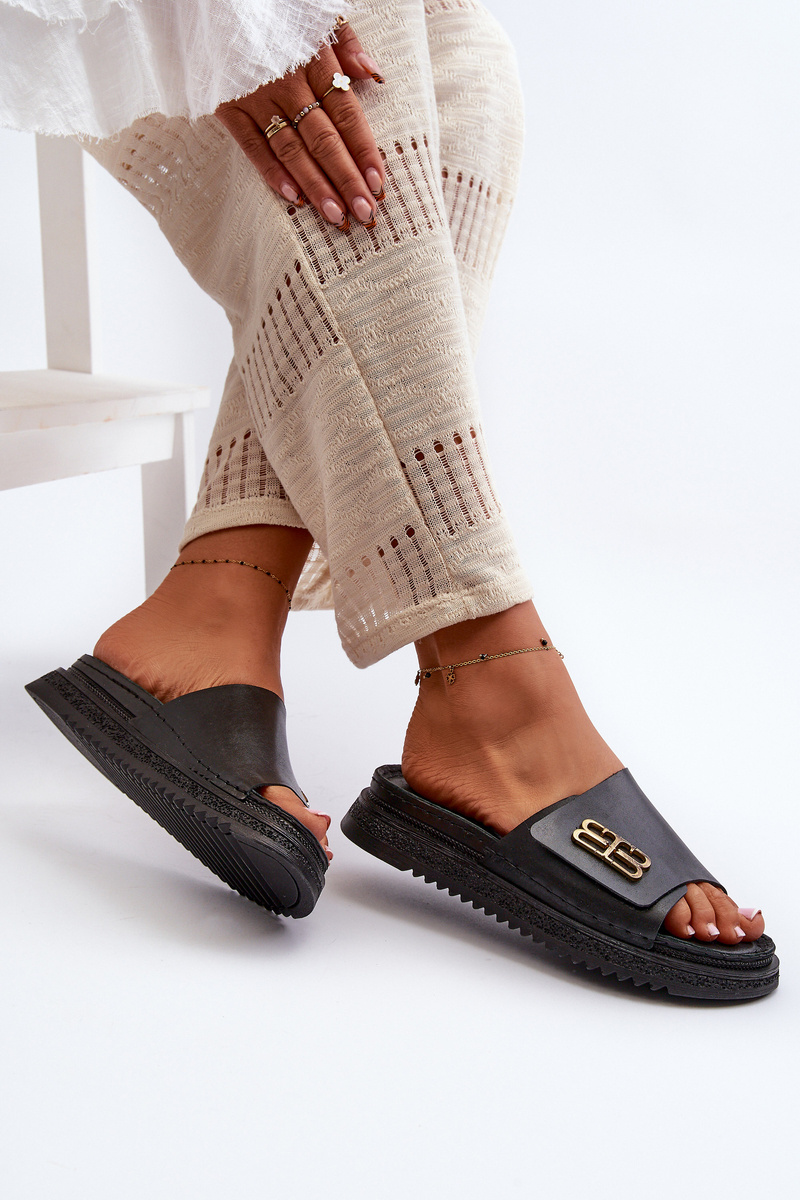 Dámské sandály vyrobené z přírodní kůže. Usazeny na platformě. Pásek zdobený zlatým detail, který jim dodává eleganci. Ideální na letní dny, tyto sandály skvěle doplní každý outfit, spojujíce funkčnost s trendy vzhledem. Při výběru velikosti se řiďte tabulkou velikostí.