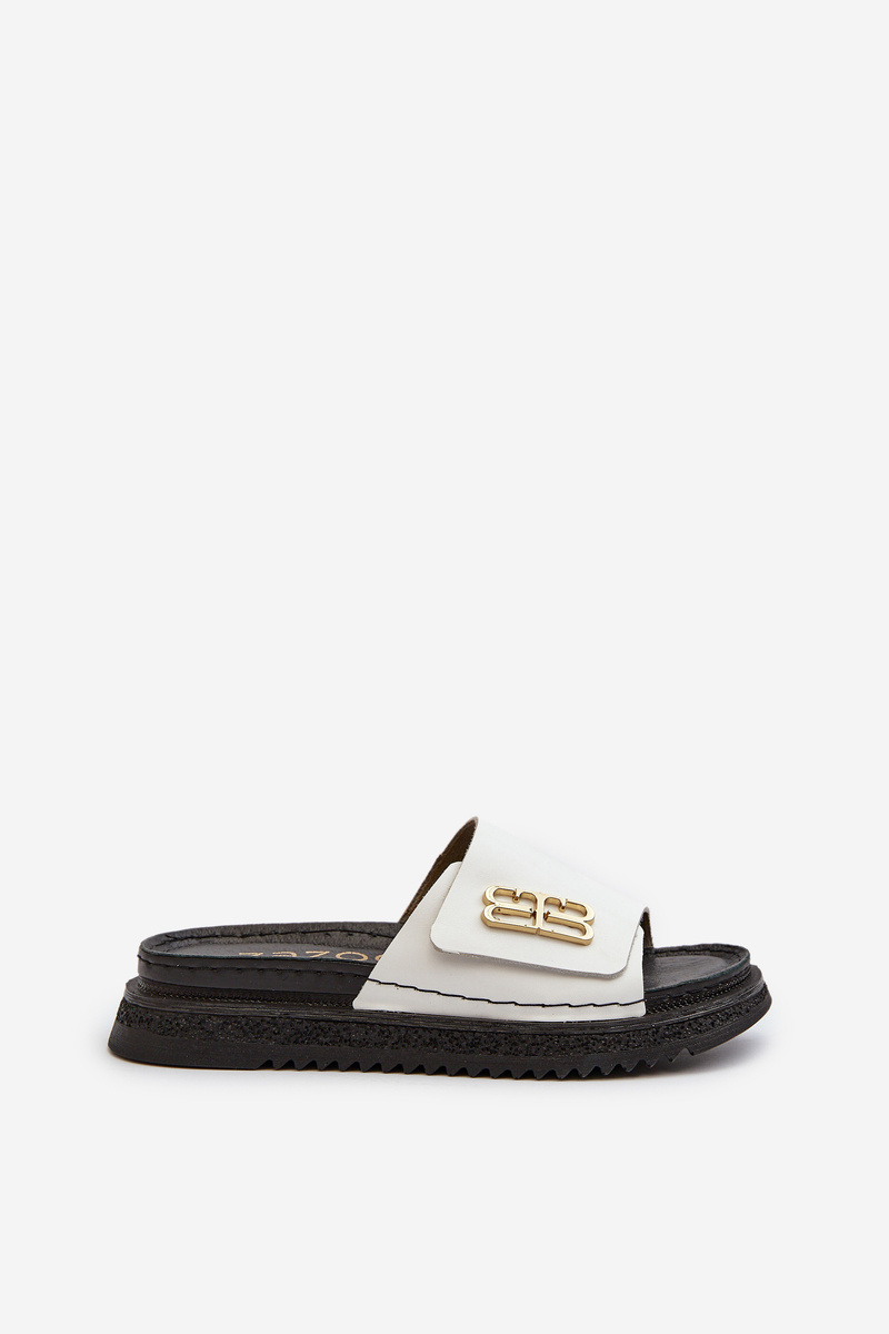 Zazoo 50101 Dámské kožené žabky na platformě, bílé