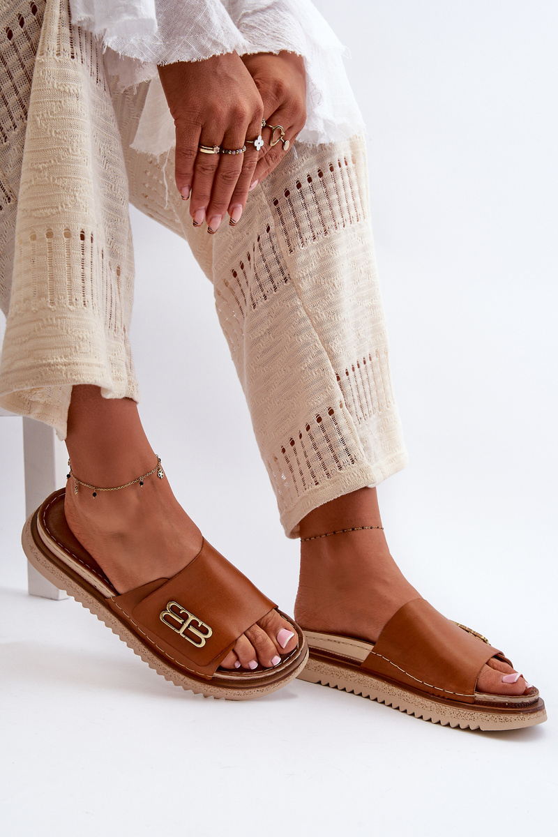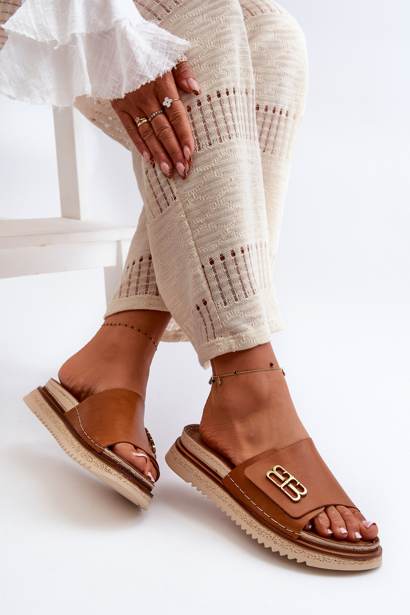 Zazoo 50101 Dámské Kožené Žabky Na Platformě Hnědé