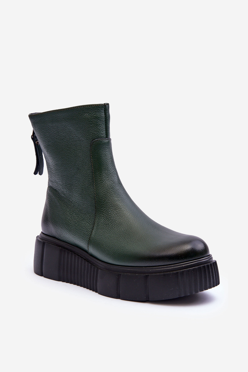 Zazoo 60369 Dámské Kožené Boty Na Platformě Zelené