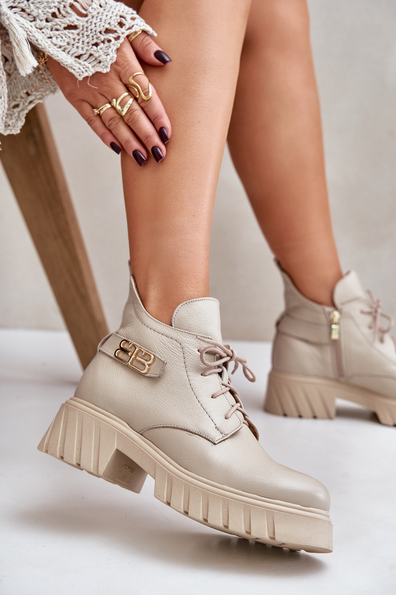 Zazoo 60483 Dámské Kožené Kotníkové Boty S Nízkým Zatepleným Svrškem Béžové