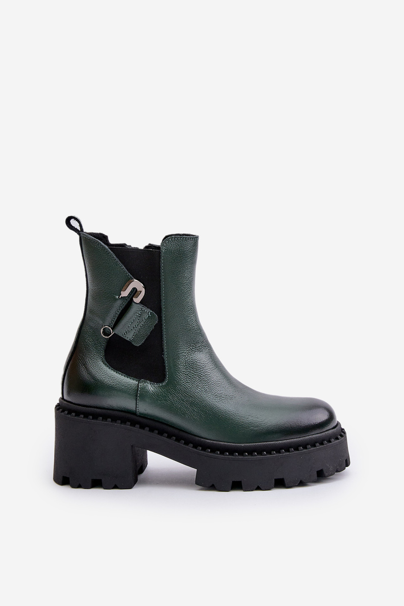 Zazoo 60490 Kožené Zateplené Boty S Dekorací Tmavězelené