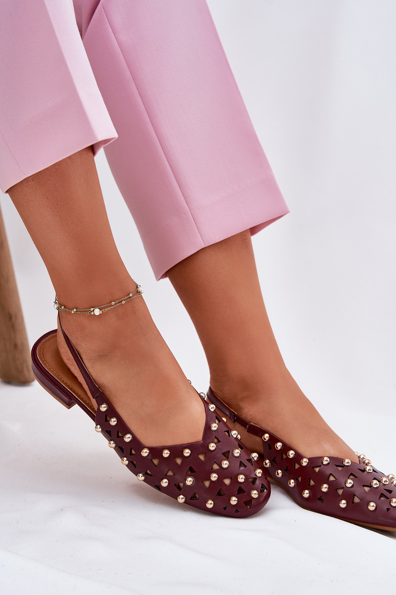 Zdobené Baleríny Na Plochém Podpatku Bordové Nilarisela