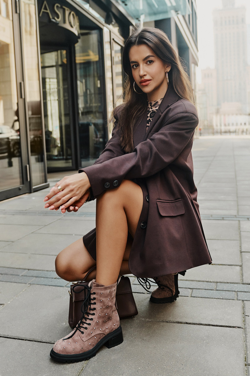 Dámské boty vyrobené z příjemného na dotek eko semiše. Uloženy na plochém podpatku. Zapínání na zip a navíc šněrování. Špičky zaoblené. Ozdoba na svršku dodává výjimečný půvab. Vnitřek je zateplený obuvnickou vlnou, což zajišťuje pohodlí a teplo v mrazivých dnech! Tento model využijete pro mnoho stylizací v podzimní a zimní sezóně! Při výběru velikosti se řiďte tabulkou velikostí.