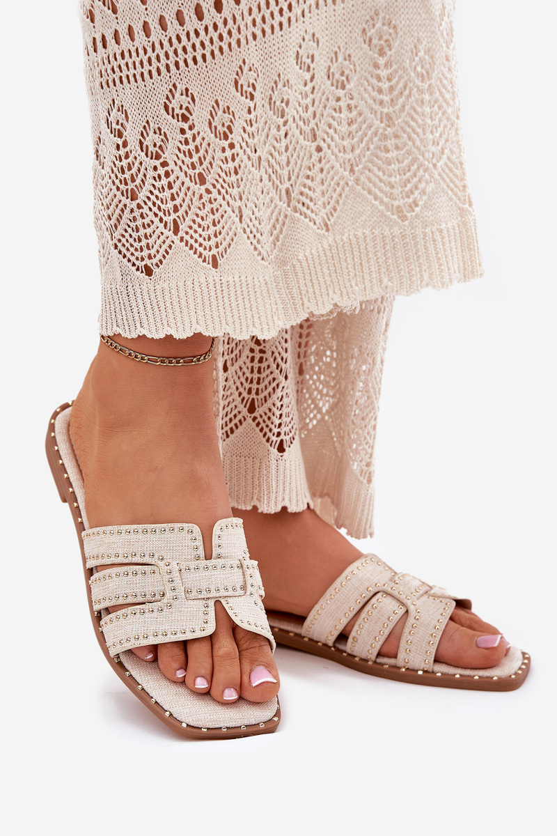Zdobené pantofle na plochém podpatku béžové Anniles
