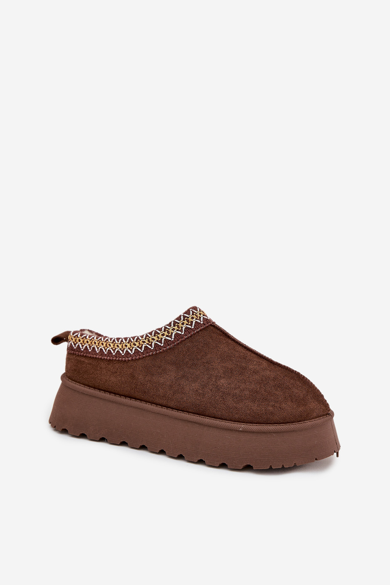 Zimní pantofle na platformě s výšivkou hnědé Tamilda