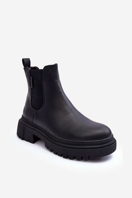 +1Zamszové Botky Workery Na Masivní Platformě Koturnie Černé Lavica