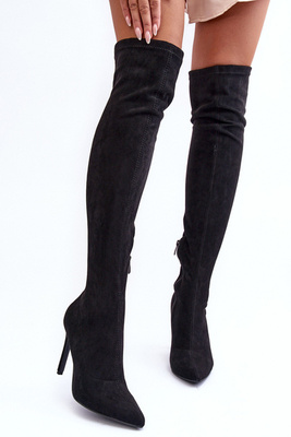 Elegantní Kožené Kozaky Před Koleno Na Sloupku Černé Felsha