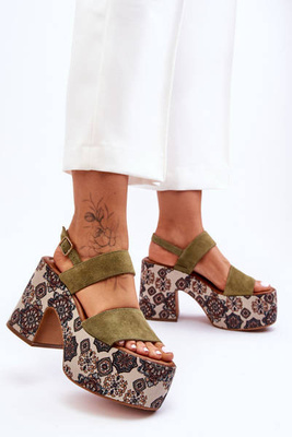 Kožené sandály na podpatcích a platformě Maciejka 06039-07 žlutá
