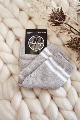 Dámské bavlněné sportovní ponožky s pruhy Bíle