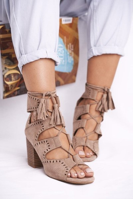 Dámské sandály Na Podpatku Semišové béžové Anastasie