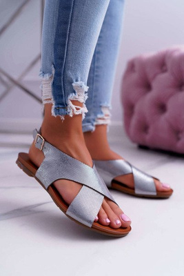 Dámské Sandály Se Zirkony Slip-on Stříbrné Satina