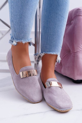 Skórzane Szare Polskie Baleriny Lordsy Gabi