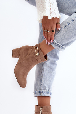 +1Dámské kožené kotníkové boty s masivním podpatkem tmavě béžové Lemar Odennia