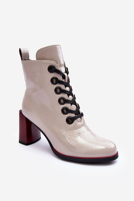 +2Leštěné šněrovací botky na podpatku SBarski MR870-15 světle šedé