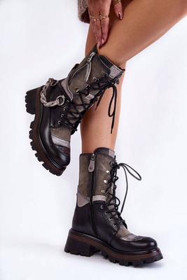 Kožené vysoké boty Workers Maciejka 05586-01 Černá a šedá