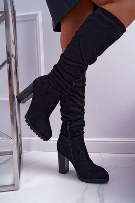 Dámské Kozačky Na Vysokém Podpatku Semišové černé Classy