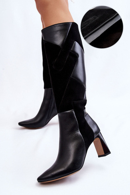 Kožené kozačky na plochém podpatku Maciejka 2878J-01 Černe